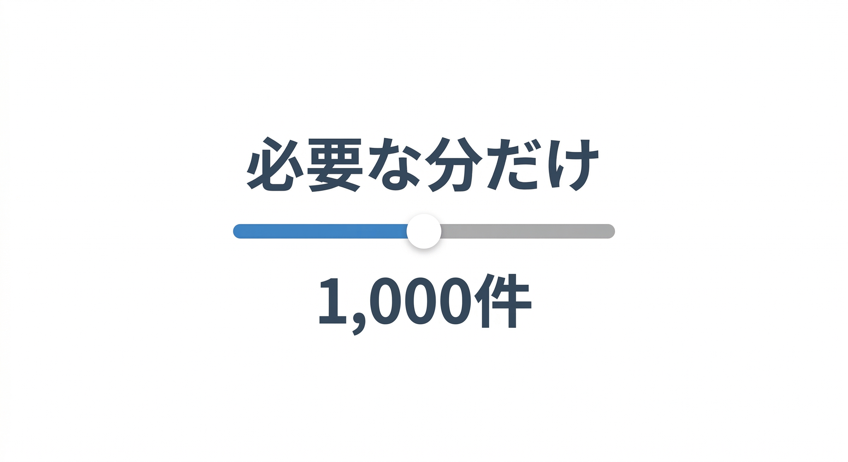 「まずは小規模なテストマーケティングから始めたい」というニーズに応え、最小1,000件から発注可能。必要な時に、必要な分だけ利用できます。